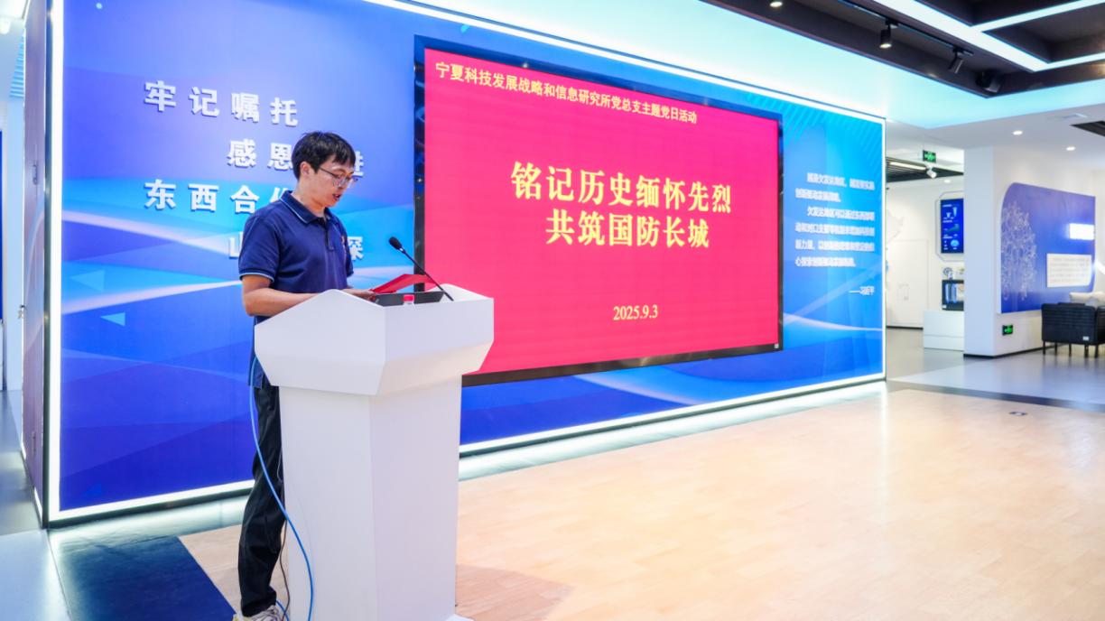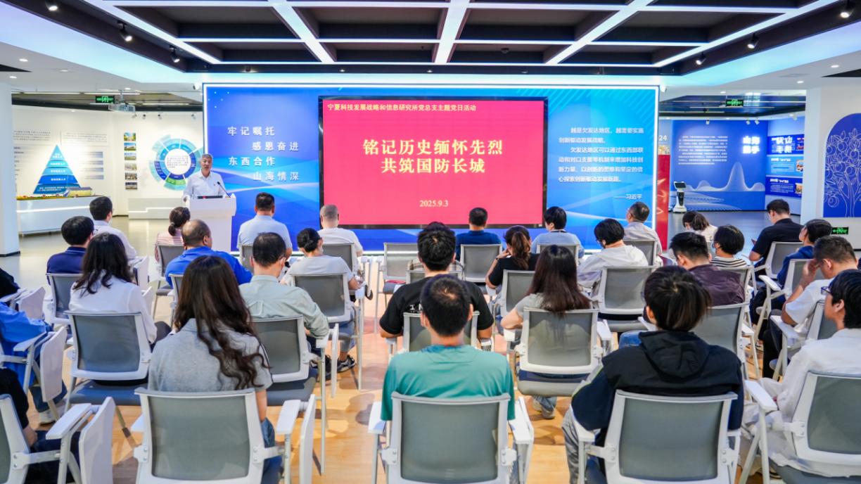 在纪念中国人民抗日战争暨世界反法西斯战争胜利80周年之际,为深入落实2025年“全民国防教育月”“民族团结进步月”要求,9月3日,宁夏科技发展战略和信息研究所党总支以“铭记历史缅怀先烈共筑国防长城”为主题开展主题党日活动,通过理论研学、宣誓明志、直播观礼等多元形式,引导全所党员干部职工在回望历史中厚植爱国情怀,在对标使命中坚定科技报国信念。